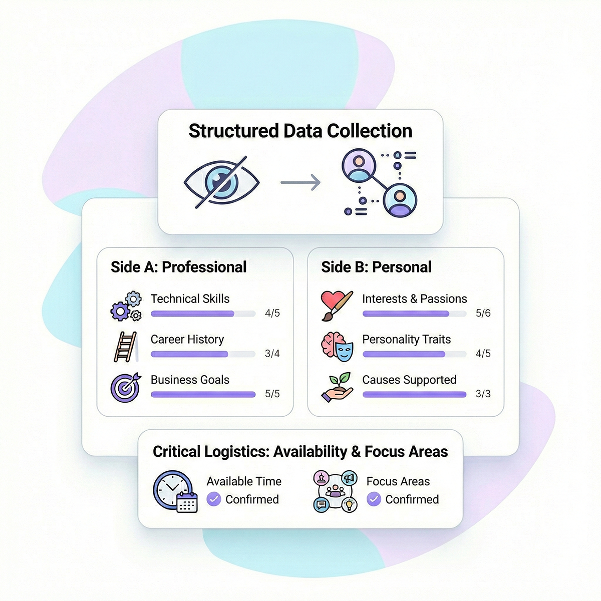 With the talent base organized, Artificial Intelligence steps in to replace days of manual work with seconds of processing. The system cross-references profiles, analyzing compatibility across: