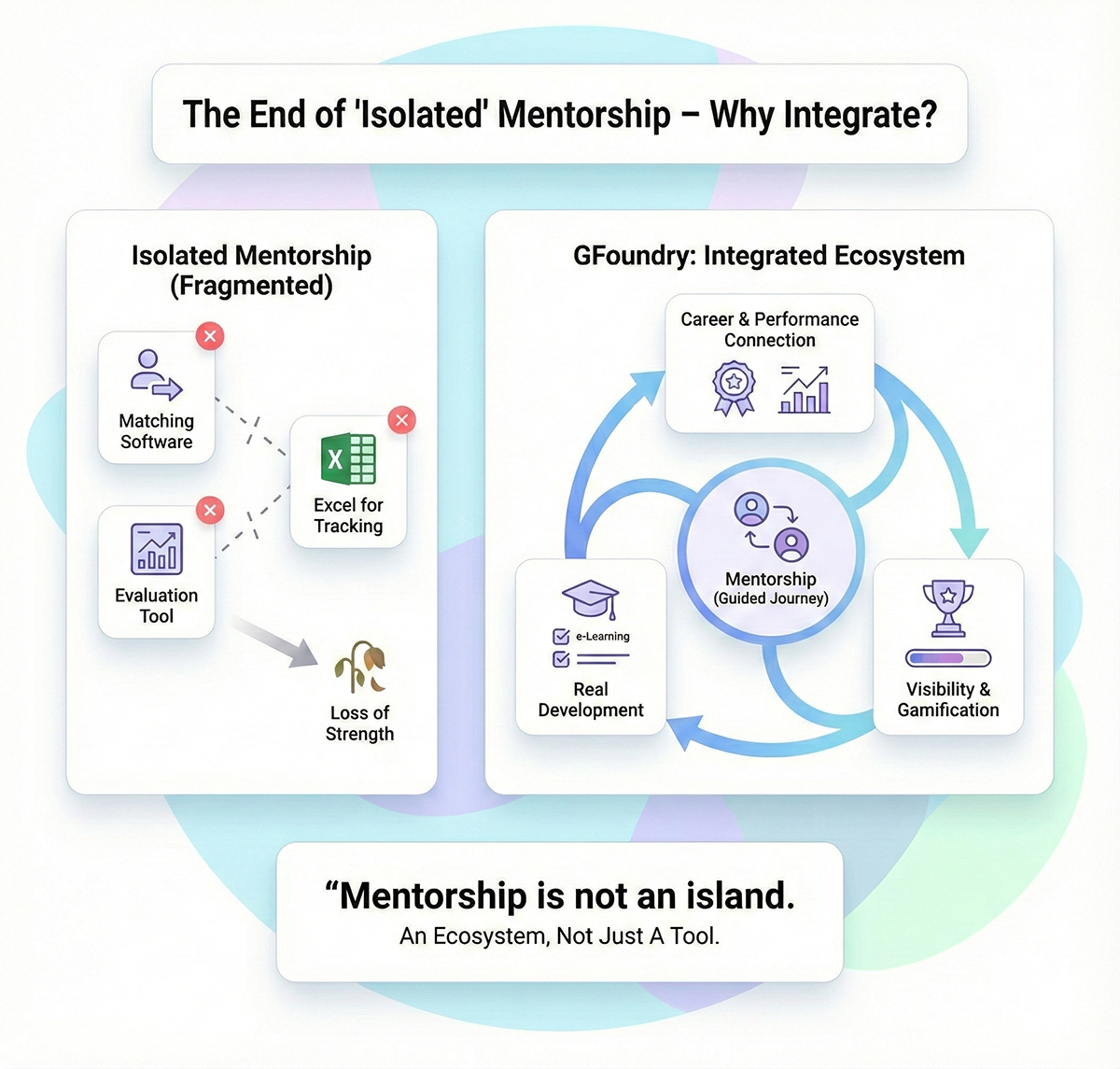 For a mentoring program to be effective and deliver measurable ROI, it cannot live in a vacuum. The key differentiator of using a cross-functional platform like GFoundry is full data integration: